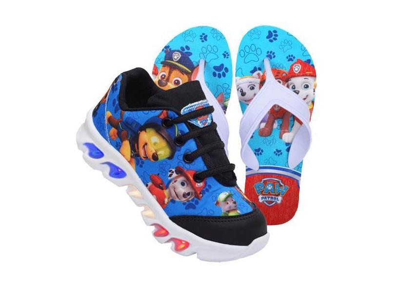 Tenis De Led Infantil Patrulha Canina + Chinelo Lançamento