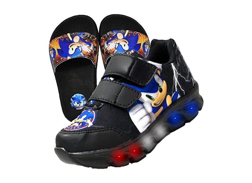 Tenis De Led Masculino Calce Facil Infantil Meninos Estilo Original + Chinelo Pala Cor:Preto;Tamanho:27