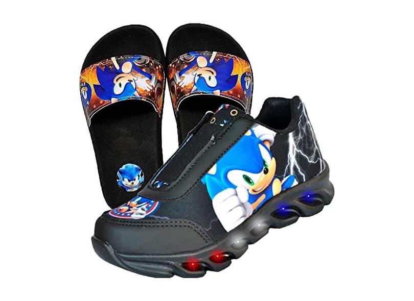 Tenis De Led Masculino Calce Facil Infantil Meninos Estilo Original + Chinelo Pala Cor:Preto;Tamanho:31