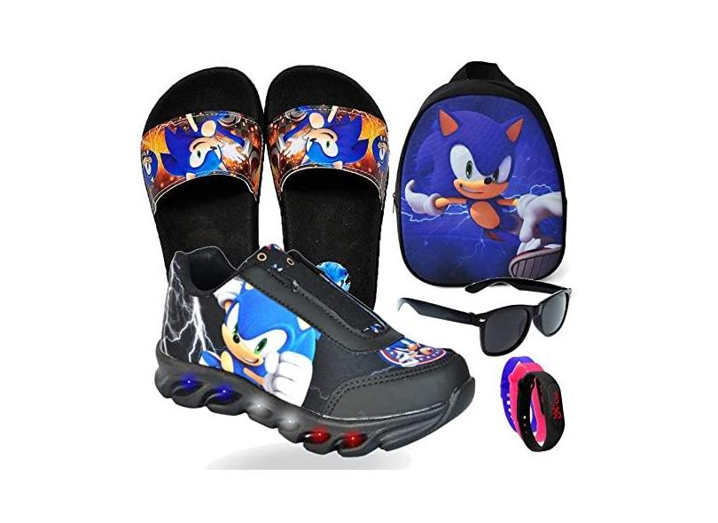 Tenis De Led Masculino Calce Facil Infantil Meninos Original + Mochila Chinelo Pala E Brindes Cor:Preto;Tamanho:34