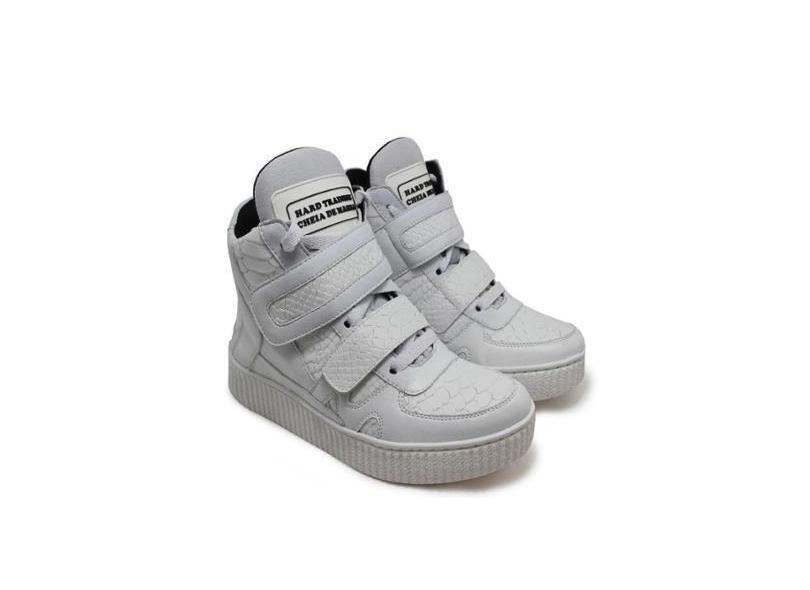 Tenis Esportivo Casual Cano Alto Feminino com Recortes Croco e Tiras Autocolantes-Feminino
