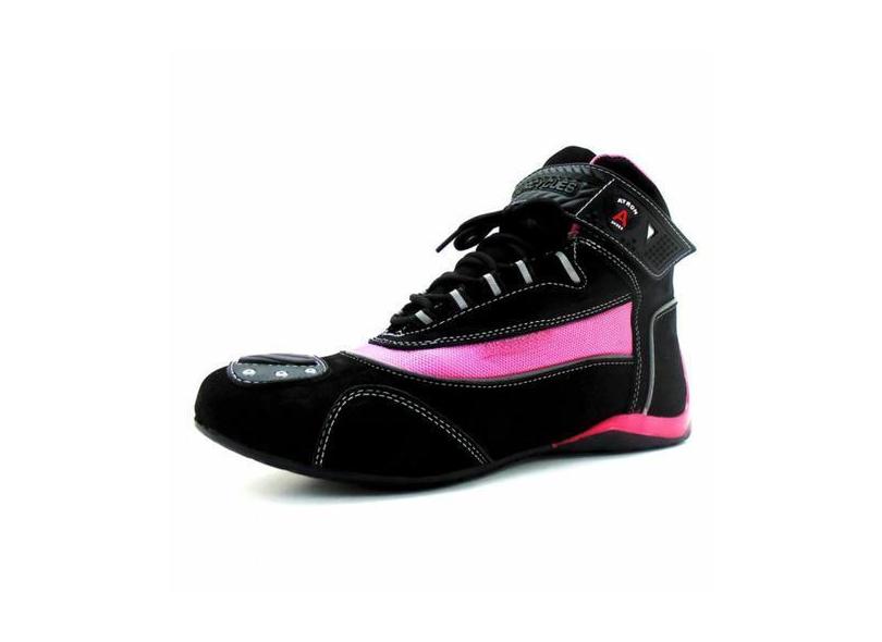Tenis Feminino Academia E Motors Cano Alto Dorf Atron Couro Preto E Pi