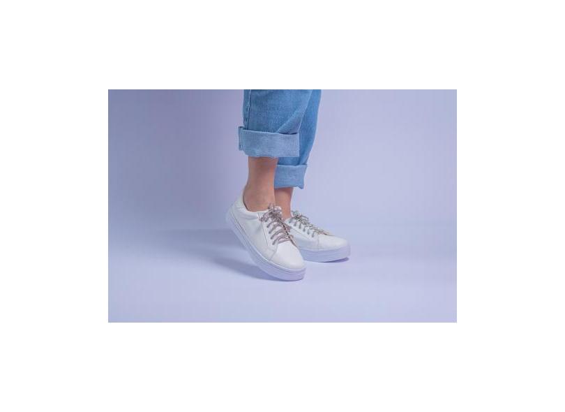 Tenis Feminino Branco Casual Brilho Macio Jaqueline Costa