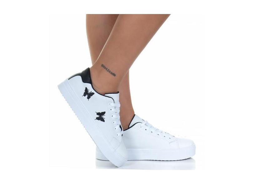 Tenis Feminino Casual Branco Preto Borboleta Estilo Shoes