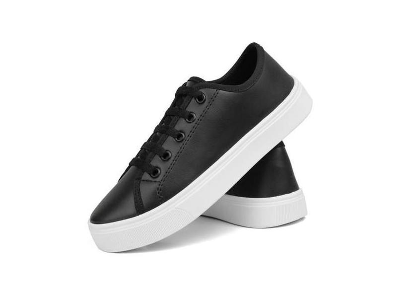 Tenis Feminino Casual Caixa Alta Com Cadarços - SapatoFran, Preto