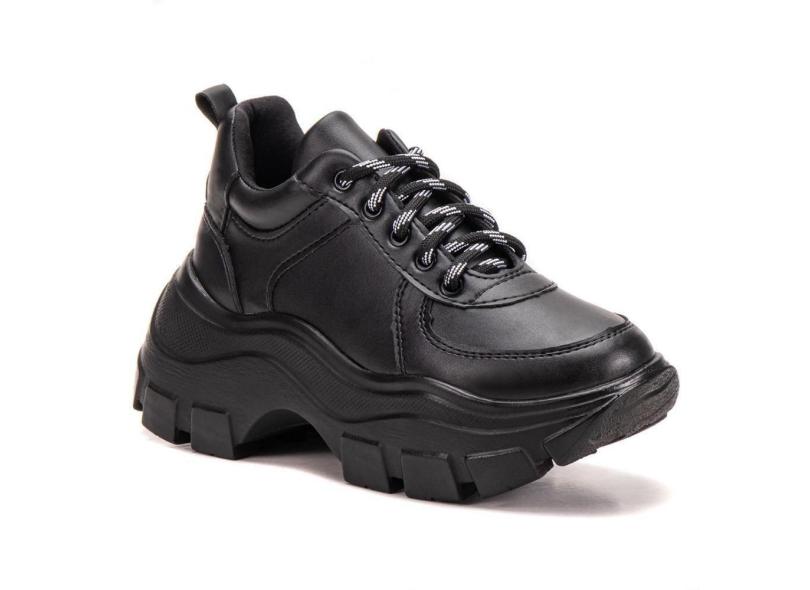 Tênis Feminino Casual Chunky Sola Alta Cadarço Moderno