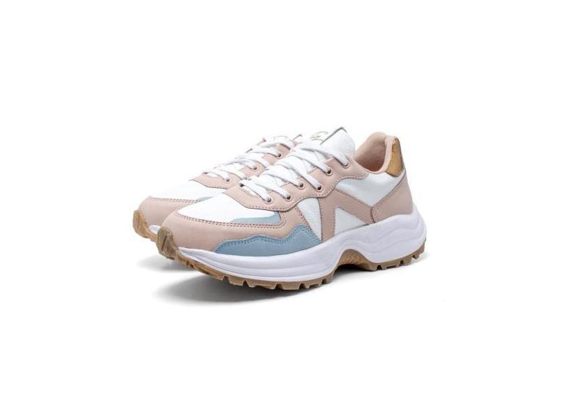 Tênis Feminino Casual Couro Sneaker Cadarço Solado Salto - De Griffe,
