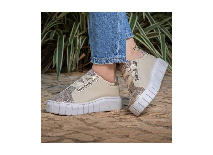 Tenis Feminino Casual Gliter Brilhante Amarração Em Cetim - 605 Gg - L