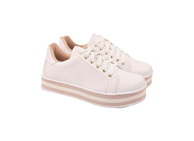 Tênis feminino casual plataforma branco com detalhes na sola/liso fash