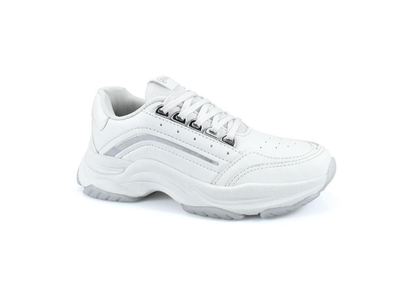 Tenis Feminino Chunky Godiva Branco Prata Reforcado Dia A Dia-Feminino