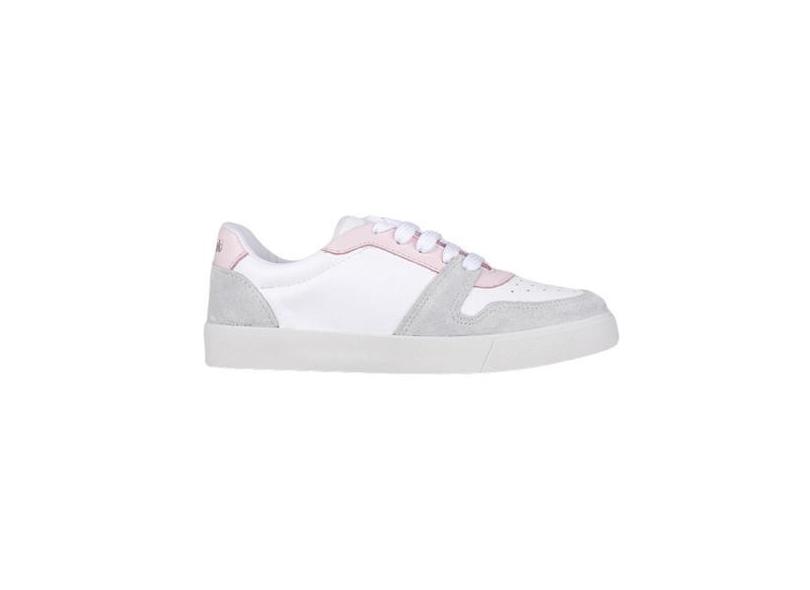 Tenis Feminino Couro Cinza Rosa Amanaki