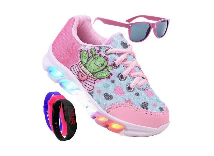 Tenis Feminino De Led Infantil Corações Personagem Diversão Luzinha +
