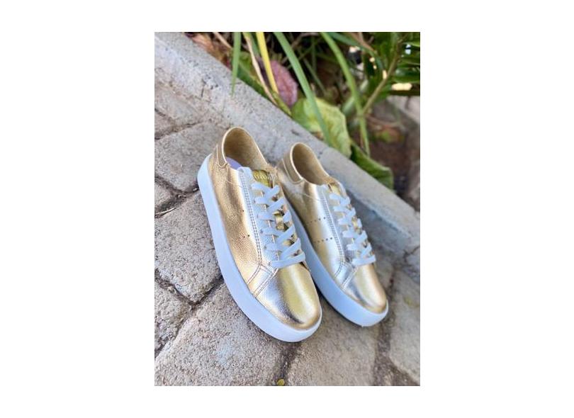 O menor preço encontrado no Brasil para Tênis Feminino Em Couro Lia Line - Dourado - Lialine atualmente é R$ 222,18.