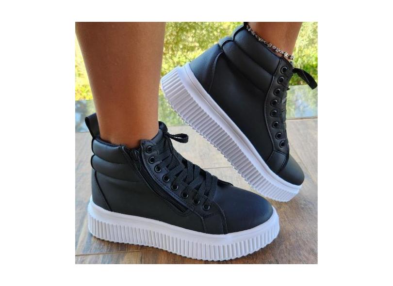 Tenis Feminino Preto Com Solado tratorado Plataforma. Bota Feminina So