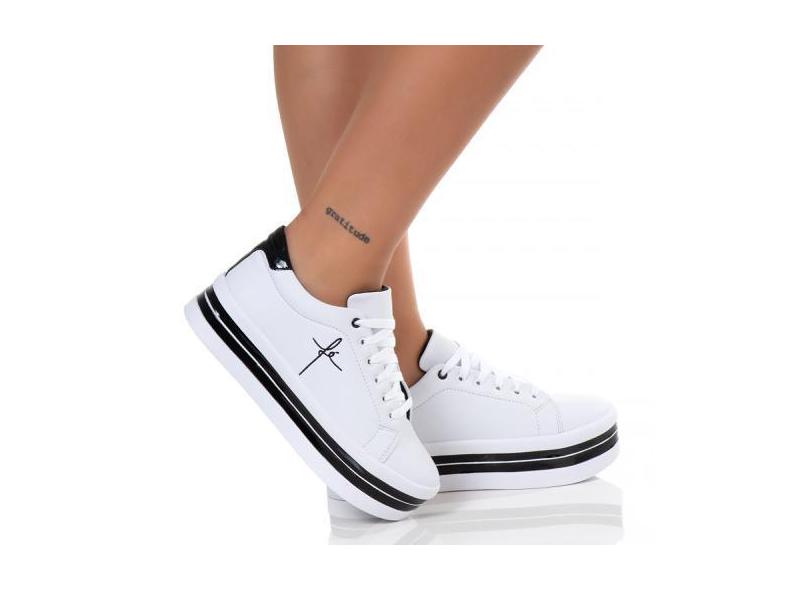 Tenis Feminino Salto Plataforma Bordado Fé Branco/Preto - Shop Estilo
