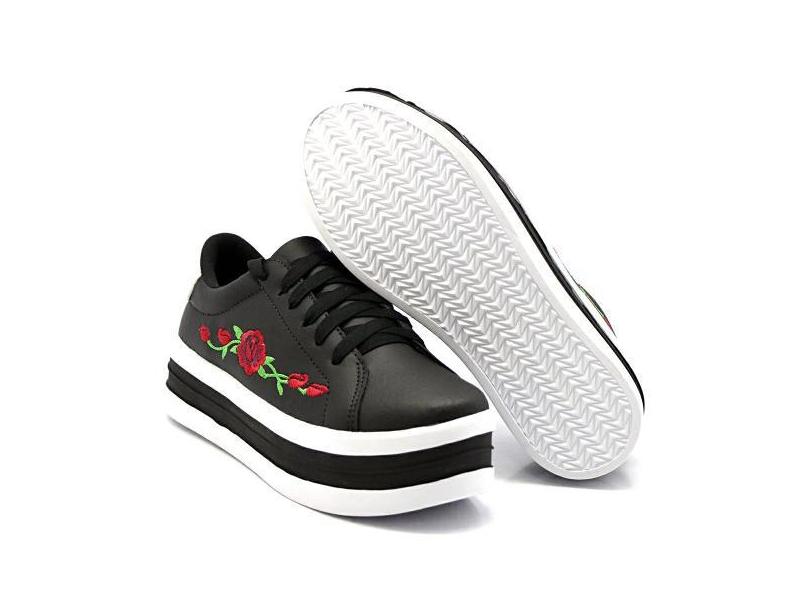 Tenis Feminino Slipon Flatform Macio Bordado - D E Spot