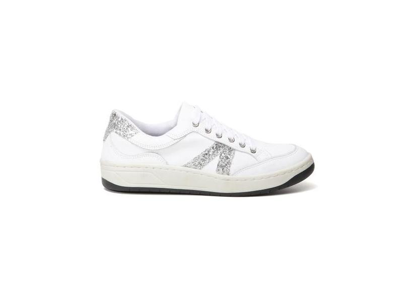 Tênis Feminino Versátil Conforto Leve Branco Com Detalhes Strass Prata