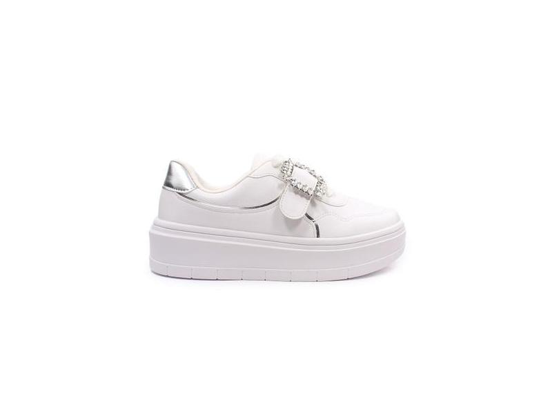 Tenis Feminino Vizzano C/Fivela Strass Branco Prata