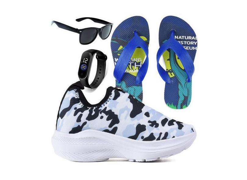 Tenis Infantil Calce Facil Meninos + Chinelo Oculos Relogio - Light