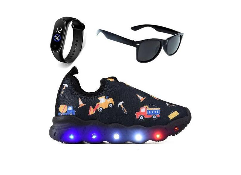 Tenis Infantil De Led Meninos Calce Facil + Oculos Relogio - Light