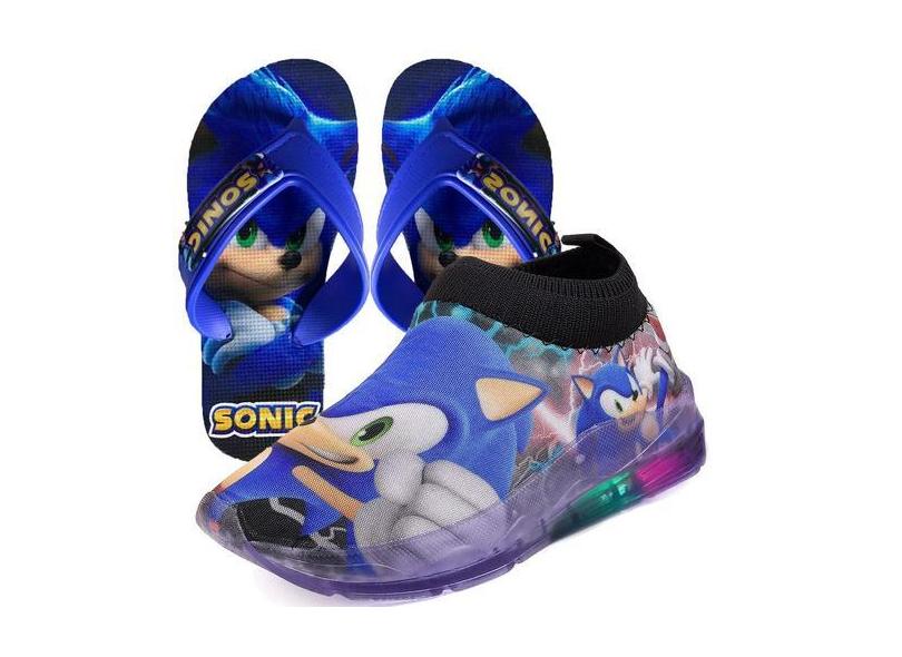 Tenis Infantil De Led Meninos Sonic Calce Facil + Chinelo - Calcados L