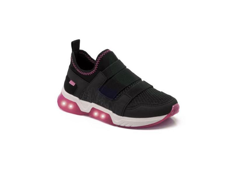 Tênis Infantil Klin Light Led Menina - Preto E Rosa