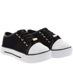 Tênis Infantil Molekinha Flatform Recorte Vinil Tecido Preto-Feminino