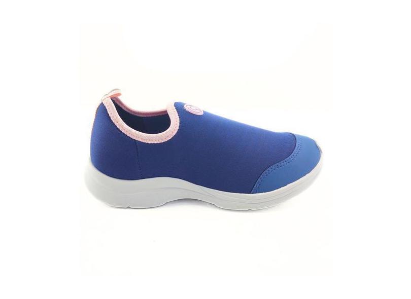 Tenis Infantil Slip On Azul E Rosa Confortável Feminino - Ortope