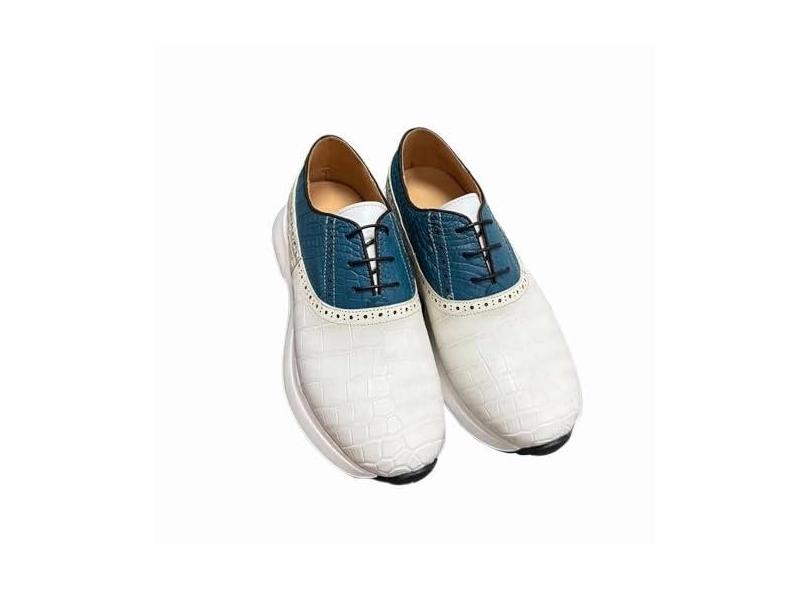 O menor preço encontrado no Brasil para Tênis masculino autêntico de pele de crocodilo de cor mista, couro de jacaré, exótico, genuíno, masculino, com cadarço macio, Azul, 39 atualmente é R$ 1.558,50.