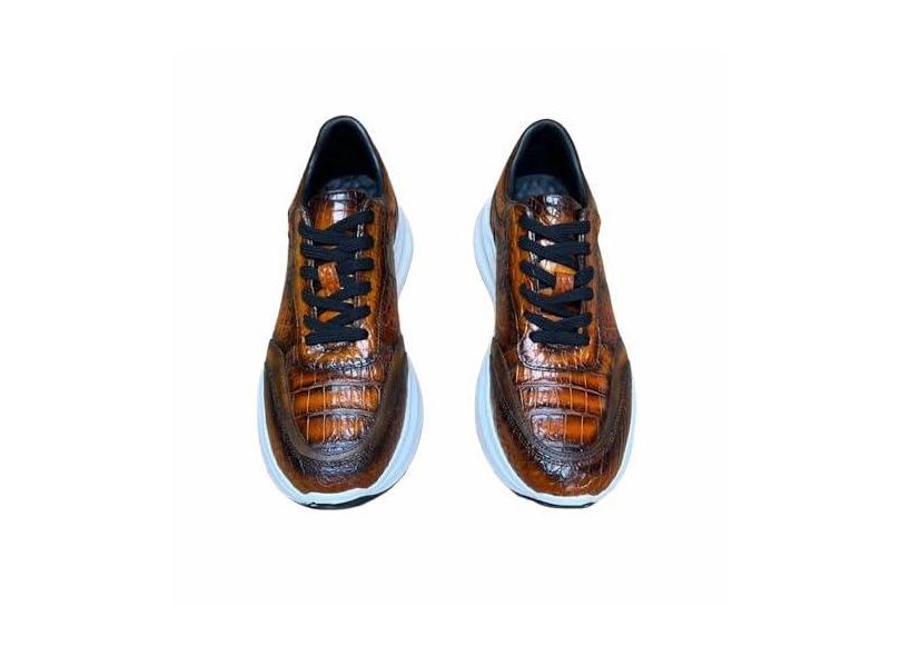 O menor preço encontrado no Brasil para Tênis masculino autêntico de pele de crocodilo pintado à mão couro de jacaré genuíno cor bronzeada cadarço masculino casual macio sapatos rasos, Marrom, 39 atualmente é R$ 1.860,22.