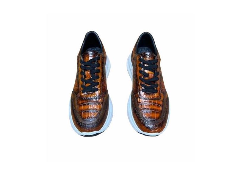 O menor preço encontrado no Brasil para Tênis masculino autêntico de pele de crocodilo pintado à mão couro de jacaré genuíno cor bronzeada cadarço masculino casual macio sapatos rasos, Marrom, 41 atualmente é R$ 1.860,22.