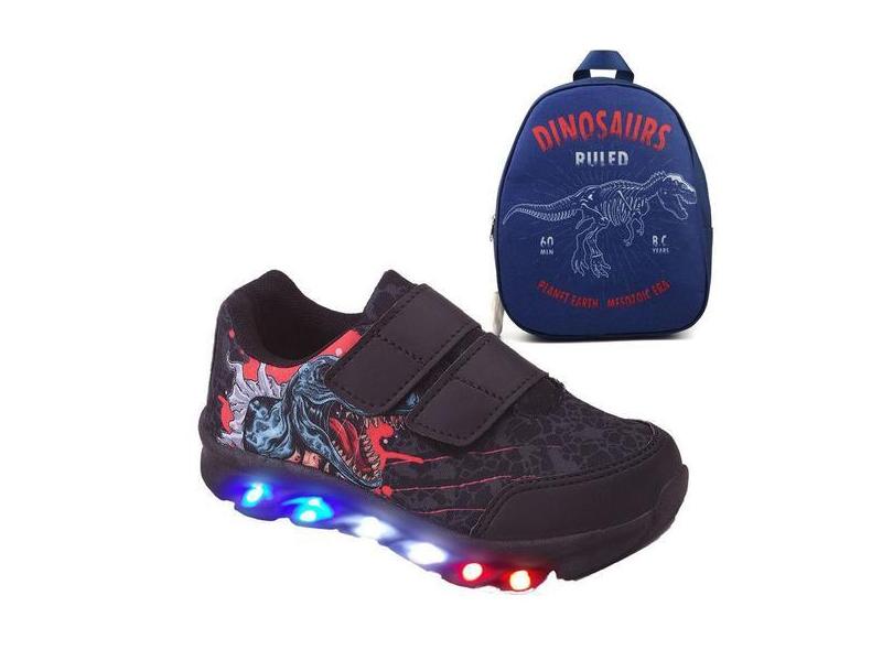 Tenis Masculino De Led Calce Facil Infantil Dinossauro Diversão Luzinh