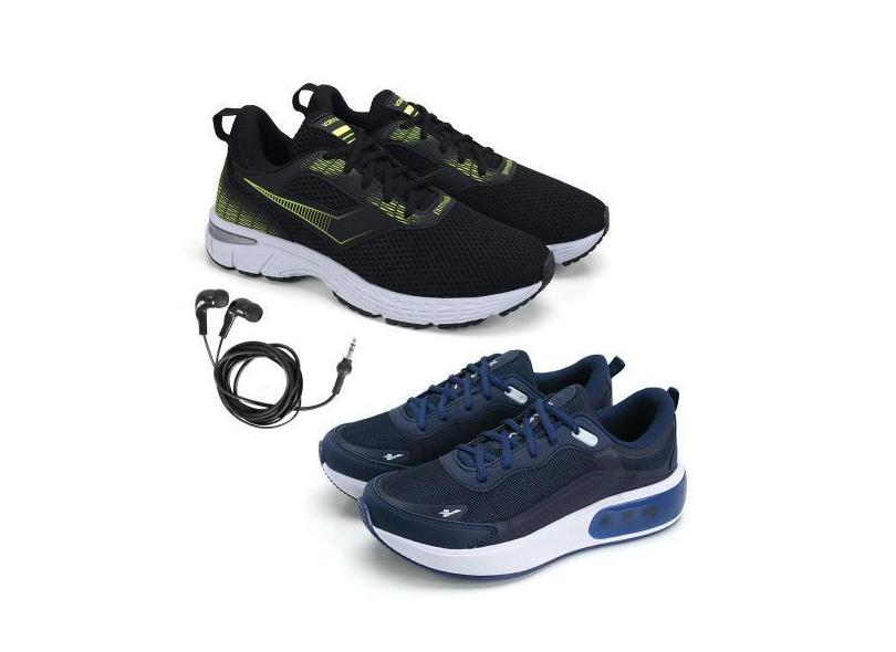 Tênis Masculino Fitness Esporte + Fone de Ouvido Fio Kit 2 - BFK, 42,