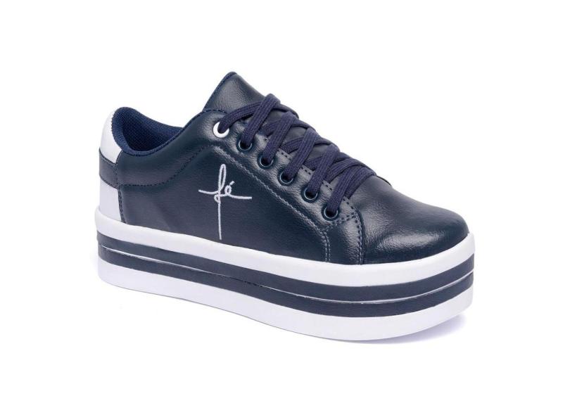 Tênis Plataforma Feminina Com Bordado Cadarço e Bico Redondo-Feminino