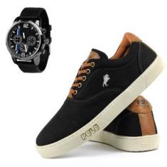 Tênis Polo White Em Lona + Relógio-Masculino
