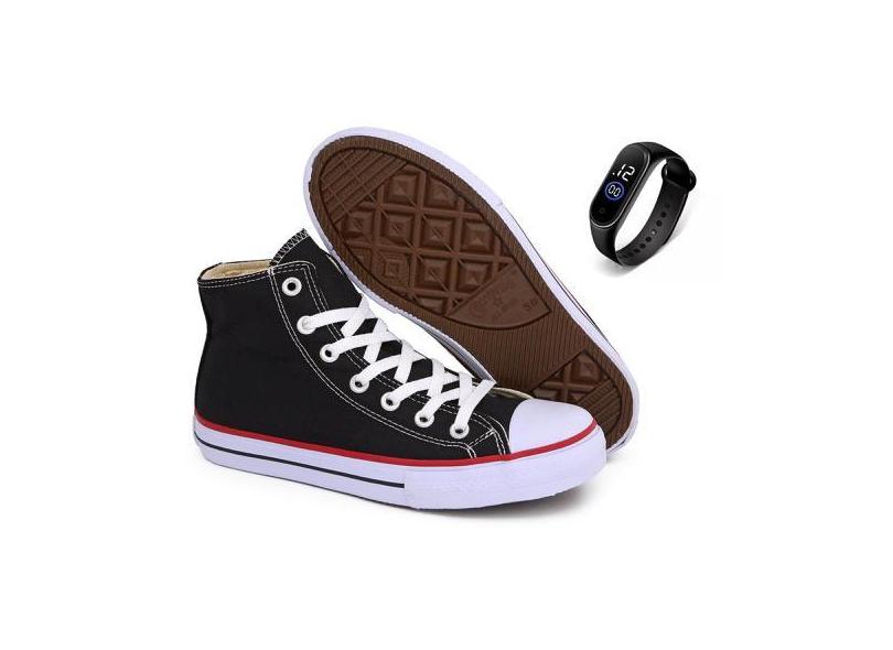 Tenis Preto Feminino Infantil Modelo Cano Alto Antiderrapante Acompanh