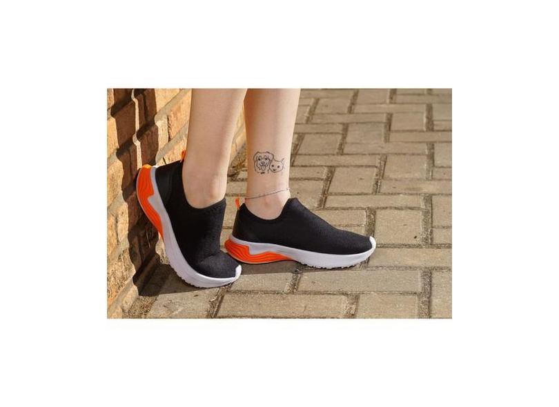 Tênis Preto Meia Confort Fácil Leve Caminhada Academia New Style - Cal
