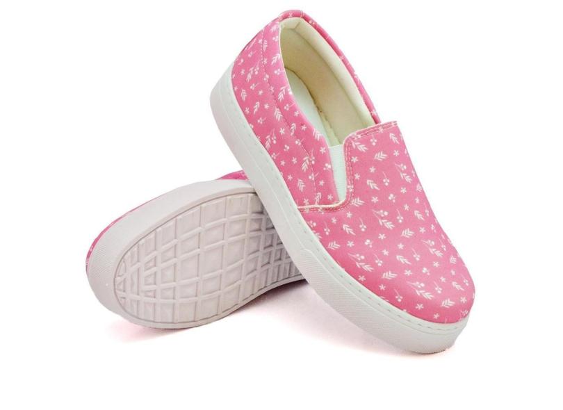 Tenis Slip On Feminino de Tecido Estampado com Sola Alta Reta e Elasticos-Feminino
