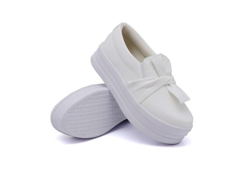 Tênis Slip On Feminino Laço Frontal Sola Borracha Robusta Leve Top Mul