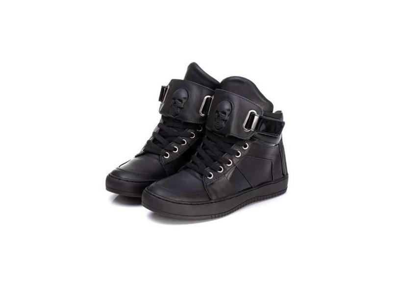 Tênis Sneaker Feminino Caveira Cano Alto Academia Couro Legítimo 5010