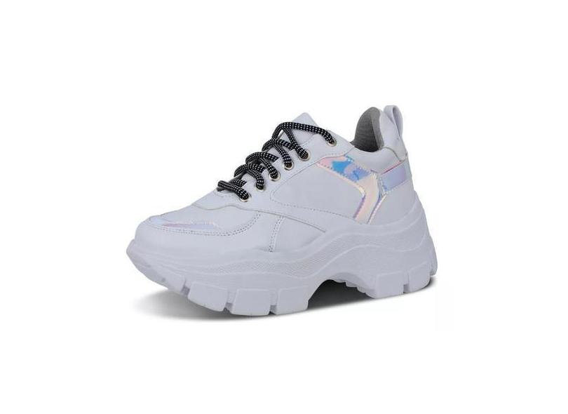 Tênis Sneaker Feminino Plataforma Tratorada Blogueira - Tk Moda, Branc