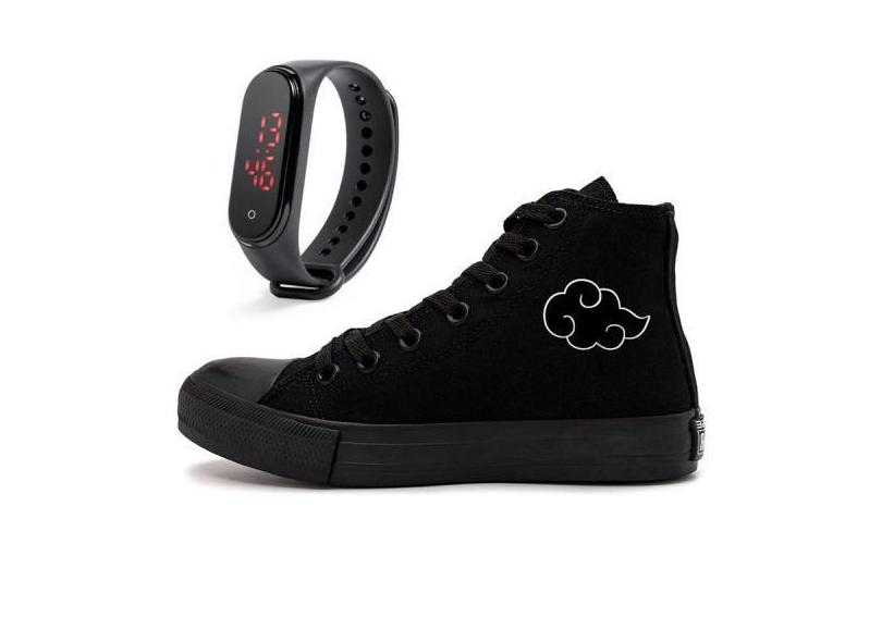 Tenis Star All Black Akatsuki Naruto Anime Nuvem + Relogio - Mr Shoes