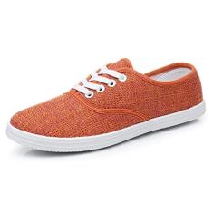 VenusCelia Tênis feminino com cadarço arco-íris, Linho laranja, 35