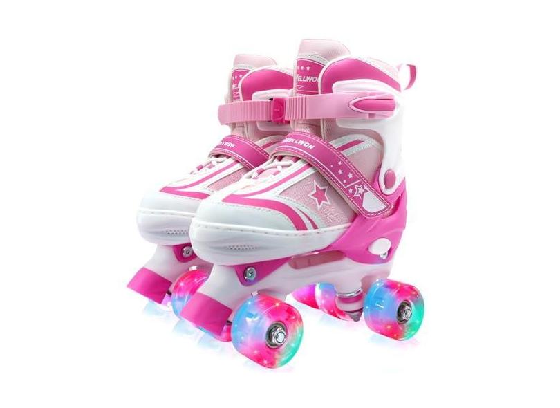 WELLWON Patins infantis para meninos e meninas, patins ajustáveis de 4 tamanhos com rodas iluminadas, tênis de patins para crianças de 5 a 8 anos, esportes internos e externos