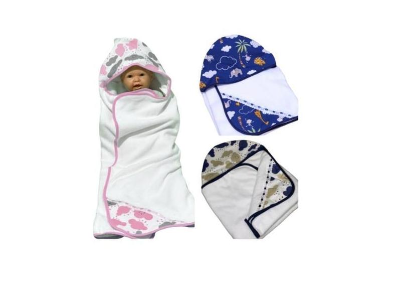 Toalha De Banho Bebê Dupla Face Com Capuz Forrada com Fralda - Denguin