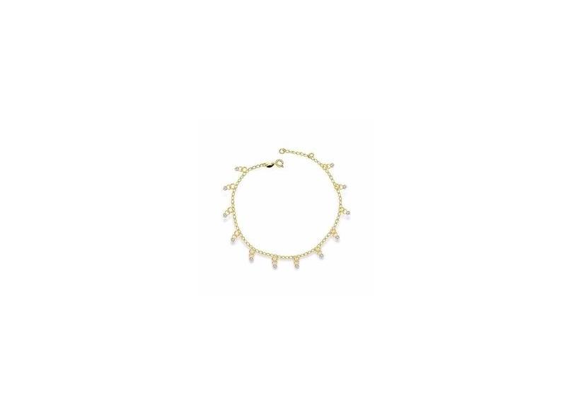 Tornozeleira Cristais De Strass Folheada A Ouro 18k. Bela!