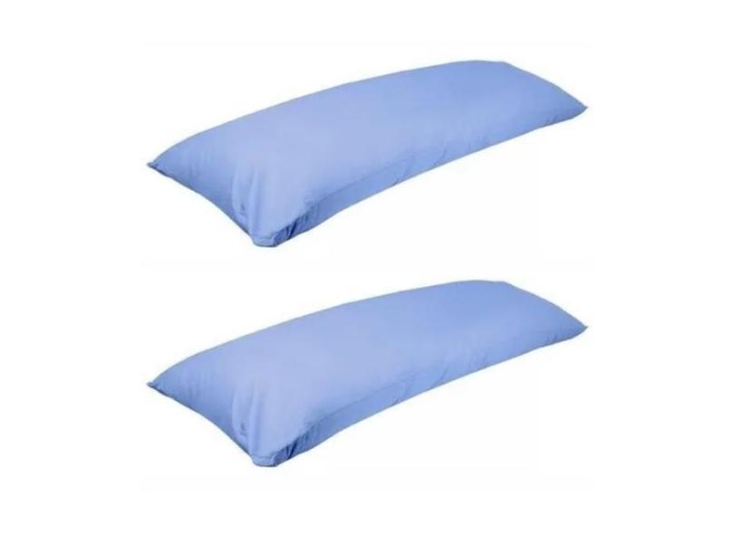 Kit 2 Travesseiro De Corpo Com Fronha 100% Algodão Fibra Siliconada Az