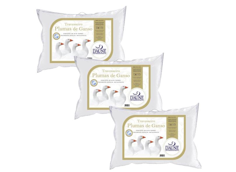 O menor preço encontrado no Brasil para Kit 3 Travesseiros Daune 100% Plumas atualmente é R$ 1.035,49.