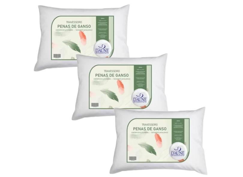 Kit com 3 Travesseiros Daune Hibridos 14cm de altura