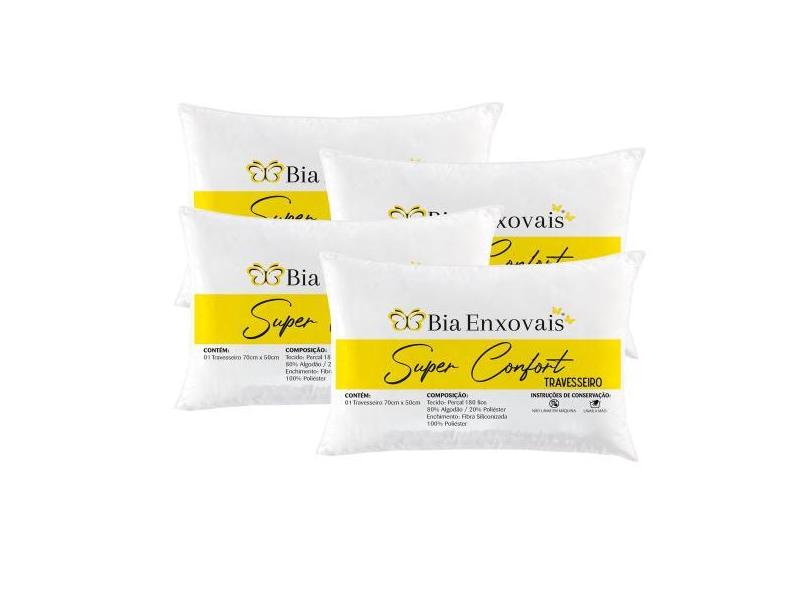 Kit Travesseiros Confort Percal 180 Fios Fibra Siliconizada 70cm x 50